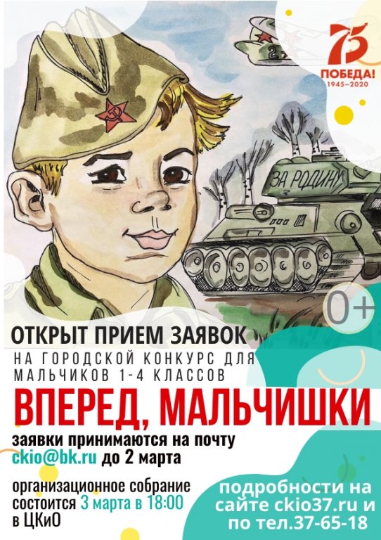 Открыт прием заявок на городской конкурс для мальчиков "ВПЕРЕД, МАЛЬЧИШКИ",приуроченный к празднованию 75-летия Победы в Великой Отечественной войне.