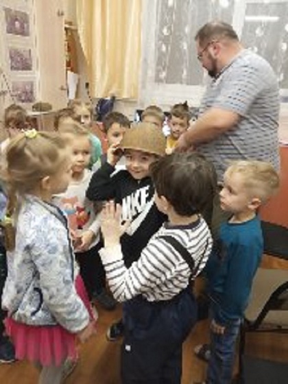 | Дошколята из «Беби-класса» Дворца творчества и их родители провели свое занятие вместе с педагогом - поисковиком Чебоксаровым В.С. |