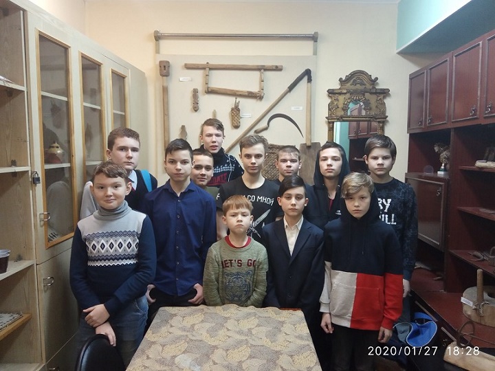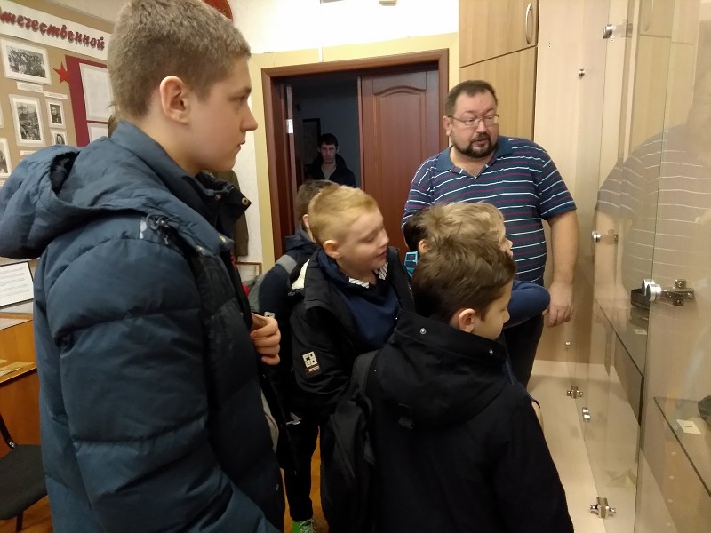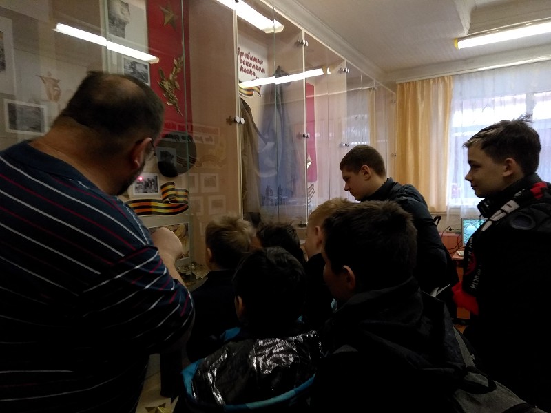 | 28 января группа учащихся спортивного клуба «Сокол» посетила экспозицию «Война. Победа. Память» во Дворце творчества.Из экскурсии, которую для юных борцов провел педагог В.С.Чебоксаров, ребята узнали: что такое солдатский медальон, почему у советских бойцов солдатские фляжки были изготовлены из стекла, какие «Папаши» и «Светы» били врага на фронте и многое-многое другое.