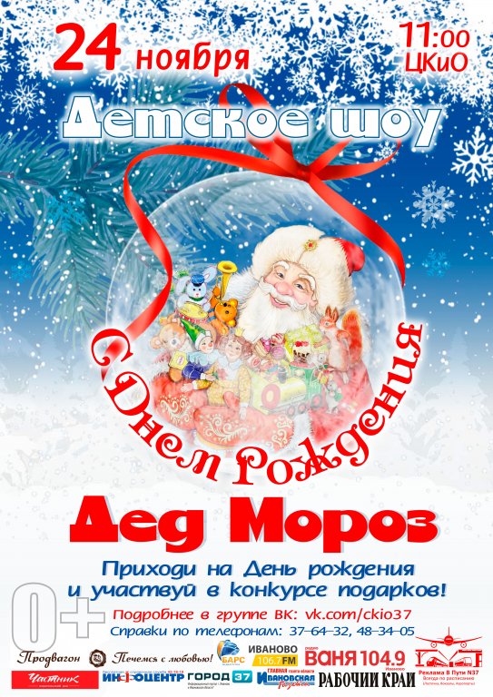 24 НОЯБРЯ в ЦКиО ивановские малыши смогут весело отметить День Рождения зимнего кудесника на детском шоу «С ДНЕМ РОЖДЕНИЯ, ДЕД МОРОЗ!»