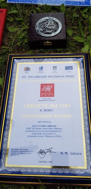 12 июля арт-студия «Мираж» Дворца творчества участвовала в Российском конкурсе «Плес на Волге. Льняная палитра». Приехав на конкурс, мы удивились длине подиума: благодаря партнерам конкурса, сцена была увеличена на 5 метров. Время награждения. Мы стали Лауреатами конкурса в номинациях: "Моё летнее платье" и "Волшебный мир театра". Честно говоря мы немного расстроились, подумав о самой важной награде в этом конкурсе - "Серебряном фениксе" и решив, что мы вряд ли её получим... И... вот СЕРЕБРЯНЫЙ ФЕНИКС конкурса «Плес на Волге. Льняная палитра» получает...». Интрига! «Образцовый детский коллектив арт-студия «Мираж»!» Весь коллектив вместе с педагогами и родителями был в шоке, ведь это второй в истории коллектива СЕРЕБРЯНЫЙ ФЕНИКС! Радости не было предела! Поздравляем весь коллектив с долгожданной наградой и желаем дальнейших творческих успехов! |