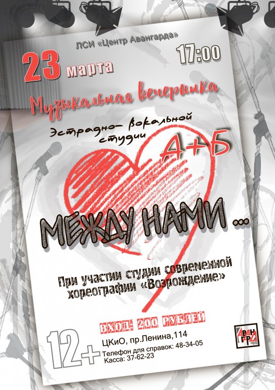 23 марта в 17:00 в «Центре Авангарда» при Центре культуры и отдыха г. Иванова состоится концерт эстрадно-вокальной студии «А+Б» «Между нами…». В этом году известный ивановский коллектив выбрал необычный формат шоу: концерт-вечеринка. Воспитанники студии исполнят современные хиты. Чудесный живой вокал, незабываемая атмосфера и по-настоящему яркое настроение – вот что всегда отличает выступления прославленного ивановского коллектива. Также в концерте примут участие воспитанники студии современной хореографии «Возрождение». Кроме того, гостей вечеринки ждут танцы и флешмобы. |