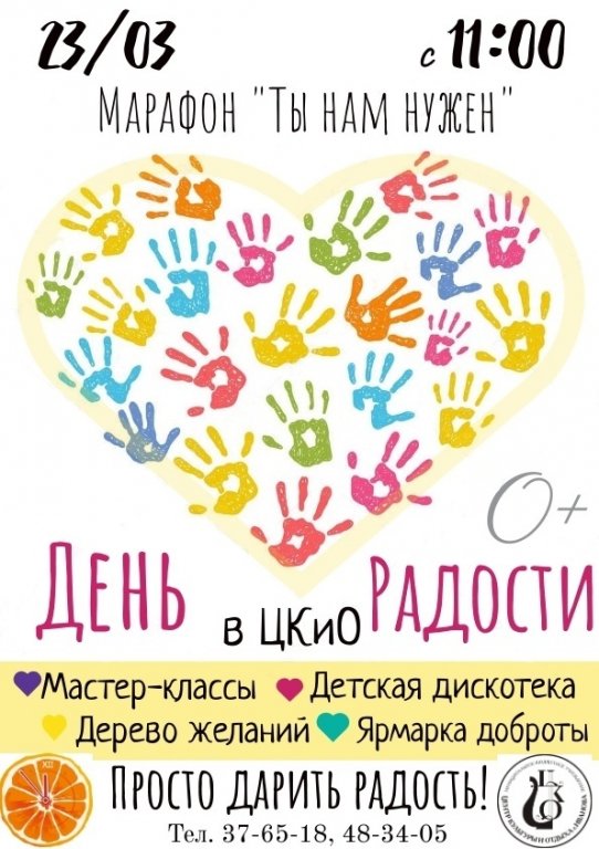 | День радости в рамках марафона "Ты нам нужен" пройдет в ЦКиО 23 марта |