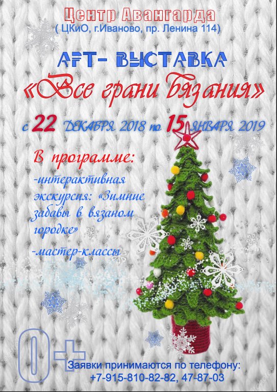 | Выставка "Все грани вязания" уже открылась в "Центре Авангарда". И она точно удивит и взрослого, и ребёнка! Здесь вы увидите вязаные... Нет. Не свитера и игрушки, а целые города! Сможете прогуляться в вязаном лесу, поиграть в вязаные игры и принять участие в увлекательных мастер-классах! Почувствуете себя великанами в сказочном городке и крошками-лилипутами в Сладком городе, где обитают огромные пончики и пирожные. Расписание работы выставки: До конца 2018 года Вход на выставку свободный! Экскурсия с куратором – 100 рублей Игровая экскурсия – 150 рублей. Мастер-классы: Вязание на пальцах – 250 рублей Вязание без крючка – 250 рублей Вязание шарфа на руках – 500 рублей Изделия, связанные своими руками, можно забрать с собой и сделать подарок близким и друзьям. Обучение вязанию крючком/на спицах – 350 р./час Куклы-закрутки или обереговые куклы – 300 р.