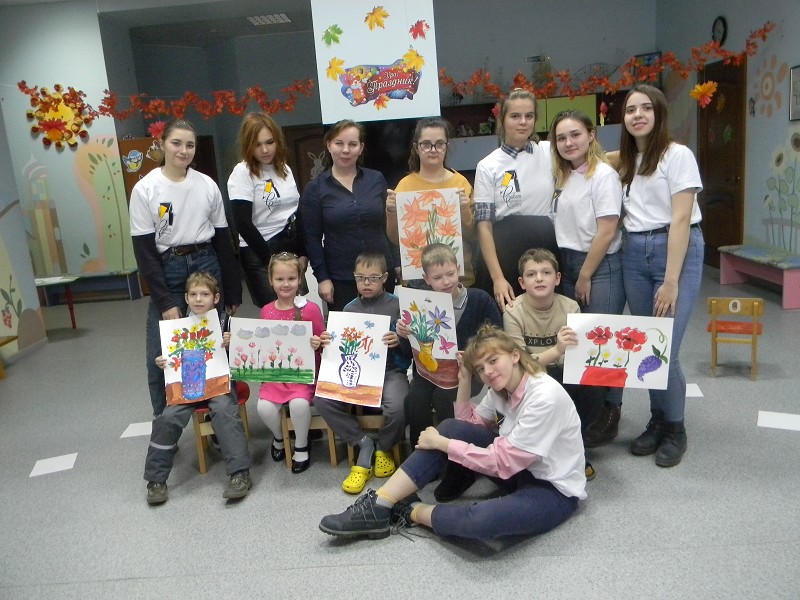 13 ноября в клубе для детей с ОВЗ «Сказка» открылись двери уже для знакомых нам волонтёров и волонтеров - студентов Ивановского государственного художественного училища. Целью встречи была ознакомить ребят с удивительным миром живописи через мастер-класс «Цветочная фантазия». Наши дети как настоящие художники взяли в руки кисточки и краски и под чутким руководством волонтеров и руководителя клуба О.В.Смирновой стали создавать свои маленькие шедевры. Важно отметить, что у каждого ребенка была своя «фантазия», которую он и воплощал на листе бумаге. Через 1,5 часа все дети оказались в настоящем цветочном саду. Совсем скоро работы ребят украсят выставку образовательного центра «Солнечный зайчик» и Художественного училища. |