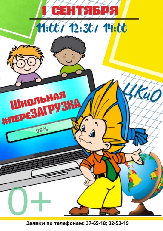 | Если ты еще не настроен начинать новый учебный год, тебе просто необходима ШКОЛЬНАЯ #переЗАГРУЗКА. 1 сентября в 11:00/ 12:30/14:00 приходи в ЦКиО и запусти свой КЛАССный учебный год с веселыми и зажигательными героями, приятными сюрпризами и веселыми играми. Школьная #переЗАГРУЗКА – это лучшее начало нового учебного года для всех, кто ждет отличных оценок, новых открытий и незабываемых приключений! Заявки по телефонам: 37-65-18;32-53-19 #цкио #иваново #первоесентября #деньзнаний #деньзнанийиваново |