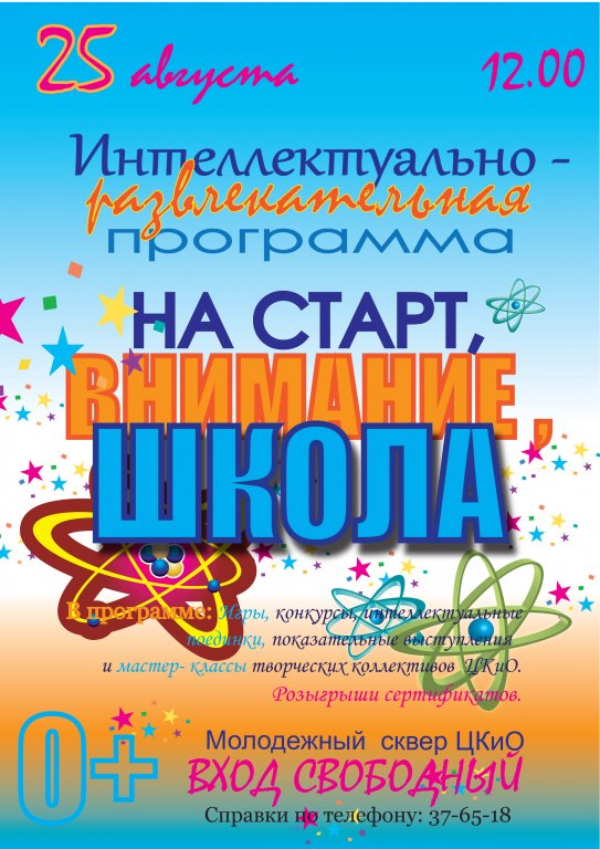 | 25 августа в 12:00 интеллектуально-развлекательная программа "На старт, внимание, школа" |
