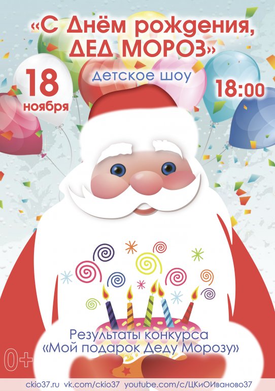 18 НОЯБРЯ в 18:00 празднуем ДЕНЬ РОЖДЕНИЯ ДЕДА МОРОЗА онлайн! ![]() ![]() ![]() Малыши города Иванова, а также их мамы, папы и педагоги потрудились на славу: подарки готовы, поздравления записаны… ждём всех на праздничном шоу онлайн! Подробнее... |