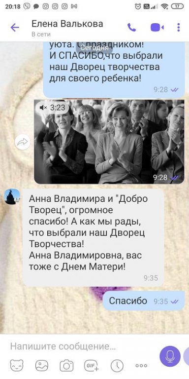| Сегодня 29.11.2020 волонтеры отряда "ДоброТворец" поздравляли с поаздником- Днём Матери многодетных мам. Их имена были выбраны не случайно- несмотря на большое количество детей,мамы успевают водить своих ребят на занятия во Дворец творчества. Вы не поверите,у нас есть мама,у которой 9(!!!) деток и почти все из них в разное время занимались и занимаются во Дворце творчества.Это Цапырина Ольга Геннадьевна. Волонтеры Богомолов В..Шептунова Д.Михеева Е. ( рук.отряда Градова А.В.) справились с заданием на отлично! |