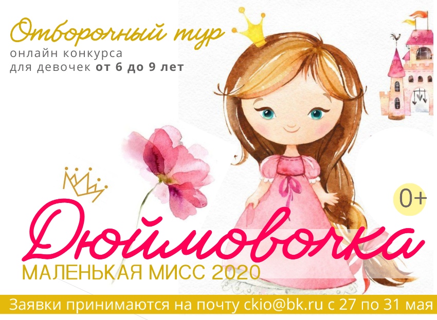 | Дюймовочка он-лайн! ЦКиО приглашает девочек 6-9 лет из города Иванова и Ивановской области на он-лайн конкурс "Маленькая Мисс Дюймовочка 2020" Положение и анкету можно скачать по ссылке: https://vk.com/ckio37?w=wall-62782619_6626 |