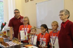 14 школьных команд вышли на старт первого в нынешнем учебном году шахматного турнира. Сезон открыли не старше десяти лет шахматисты. По две команды сумели собрать в лицее №33 и гимназии №36. В составе должны быть 3 мальчик и одна девочка, все из одной школы. Допускались и дошкольники. Этим правом воспользовались два коллектива: гимназии №30 и №32. Причем РАУПОВ АРТУР не только здорово поддержал поверившую в него команду, но и принес в копилку 5,5 из 9 возможных очков - результат почти вровень с капитанским!