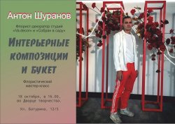Приглашаем всех любителей прекрасного присутствовать при рождении удивительных флористических композиций на мастер-классе выпускника школы "Флорис" Антона Шуранова. Флорист-декоратор международного уровня научит правилам создания модных осенних и зимних композиций.