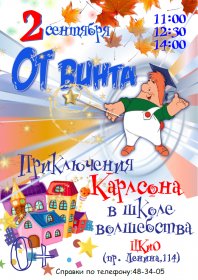 b9;2 сентября отправимся в школу волшебства, чтобы помочь известному добряку Карлсону решить настоящую магическую задачку! Юных путешественников ждут маленькие шалости и большие превращения, классные уроки и самые веселые перемены!