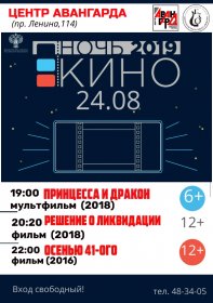 24 августа с 19:00 мы открываем для вас кинотеатр в рамках акции "Ночь кино"!