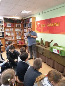 26 февраля в Центральной городской детской библиотеке города Иваново состоялось открытие интерактивной выставки-инсталляции "Эхо Войны", посвященной 75-й годовщине Победы советского народа в Великой Отечественной войне. В представленную экспозицию вошли как реликвии военного времени, обнаруженные поисковиками на местах былых сражений, так и материалы из фондов библиотеки. На встрече присутствовало более пятидесяти учащихся из школ №18 и №20 г. Иваново.