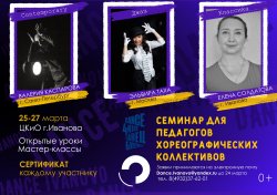 С 25 по 27 марта в Центре культуры и отдыха г. Иванова впервые пройдет семинар для преподавателей хореографических коллективов.