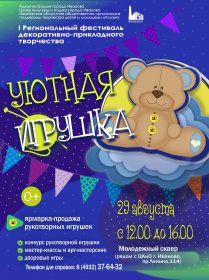 29 августа с 12:00 до 16:00 в Молодежном сквере возле ЦКиО будет работать выставка-ярмарка «Уютная игрушка», приуроченная к 150-летию города Иваново.
