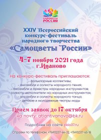 Продолжается прием заявок на XXIV Всероссийский конкурс-фестиваль «САМОЦВЕТЫ РОССИИ»